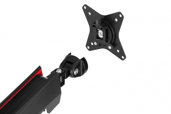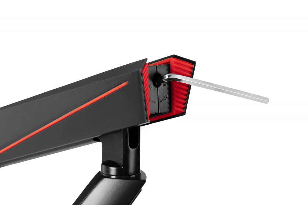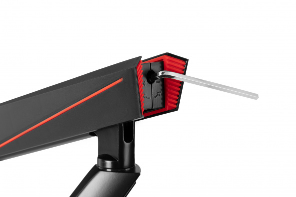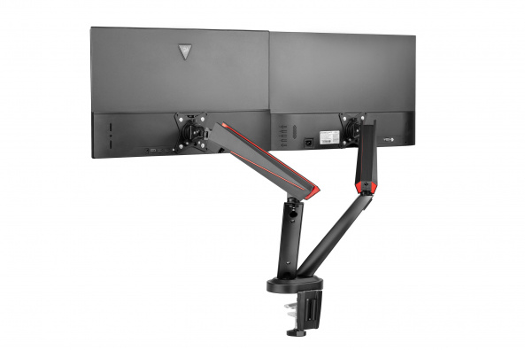 Підставка для двох моніторів чорного кольору з червоними вставками. Дизайн продовжує кіберспортивний дух 2E Gaming – тож запекла битва у грі чи просто ефективне виконання робочих завдань точно будуть під контролем!