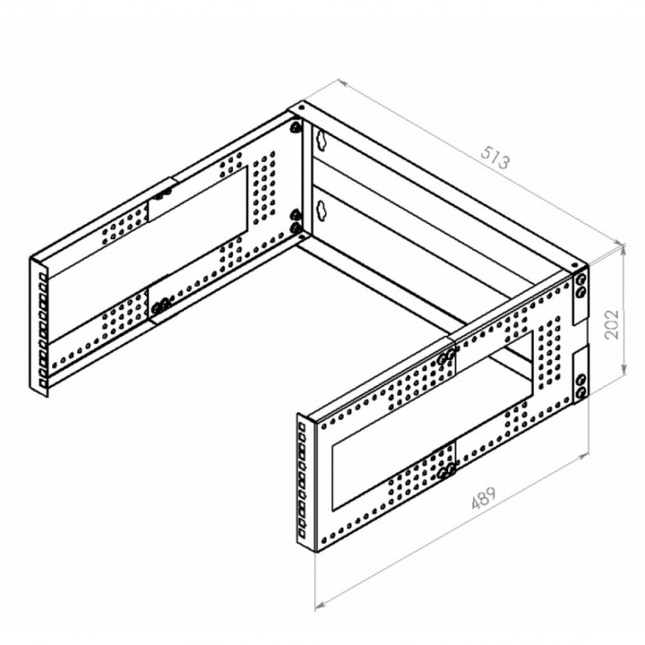 Відкритий монтажний кронштейн 19” для організації вузла комутації початкового рівня. Висота: 4U. Корисна глибина: 280 – 480 мм. Допустиме навантаження: 20 кг. Колір: сірий.