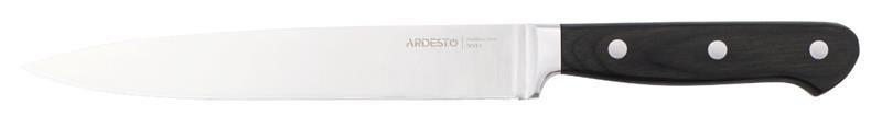 Опис товару Кухонний ніж слайсерний Ardesto Black Mars, 32 см, довжина леза 20,3 см, чорний, нерж.сталь, дерево