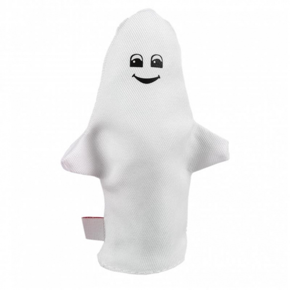 Кумедний привид Каспер зовсім не страшний, тому сподобається малечі. Ляльку-привида можна використовувати не лише у пальчиковому театрі, а й у інших іграх. Лялька виконана з текстилю, вона м'яка і пластична. Тому навіть найменші діти зможуть вправно керувати Каспером і демонструвати рухи героя. Лялька для пальчикового театру адаптована для дітей від 3-х років.
