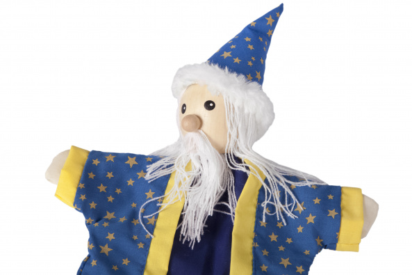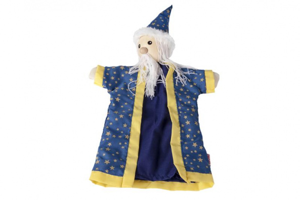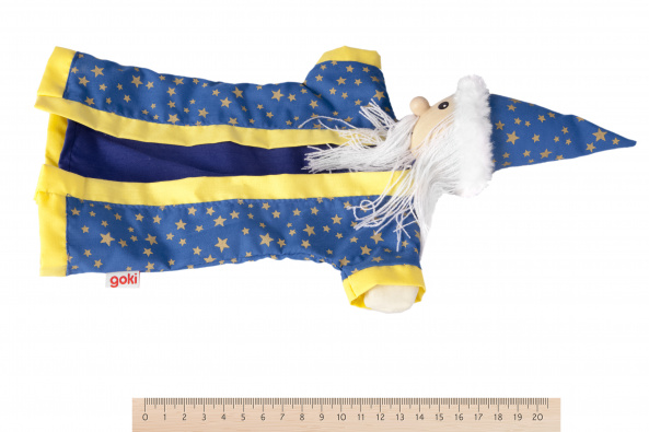 Старець-чарівник є персонажем багатьох казок - як українських, так і світової літератури. Тому ця лялька-рукавичка буде особливо затребуваною для гри в ляльковий театр. Довга сива борода, мантія та гострокінечна шапка роблять цю лялько не схожою на жодну іншу з серії лялькового театру goki.