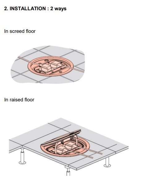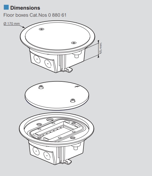 DLP Legrand люк в підлогу на 4 модуля Mosaic, зі знімною кришкою і супортами, IP66, нерж. Підлогові коробки IP 66 - 4 модуля. Поставляються з кришкою і 4-модульної опорною рамою для програми Mosaic чи механізмів Arteor. Для установки в метал. коробку прихованого монтажу Кат. № 0 800 69 або безпосередньо на фальшпідлогу. З кришкою - для внутрішнього і зовнішнього використання. Опір навантажень при закритій кришці: 10000 Н. Може бути оснащений аксесуаром для кабельного виходу Кат. № 0 880 62. Коробки для підлоги IP 66 - 4 модуля - для фальшпідлоги або бетонної підлоги. Відповідає IEC / EN 60670-23