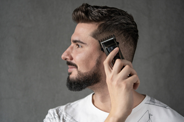 Компактна машинка для підстригання волосся з керамічним лезом, вбудованим акумулятором, LED-дисплеєм та комплектом насадок.Корпус виконано з пластику чорного кольору та доповнено хромованою панеллю. Машинка підтримує регулювання довжини підстригання без використання насадок, а для зручного зберігання передбачена підставка з можливістю підзарядки.