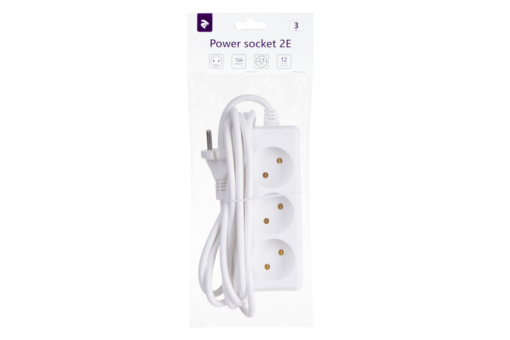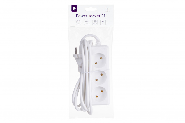 Опис товару Мережевий подовжувач 2Е 3XCEE 7/17, 2G*1.0мм, 3м, white
