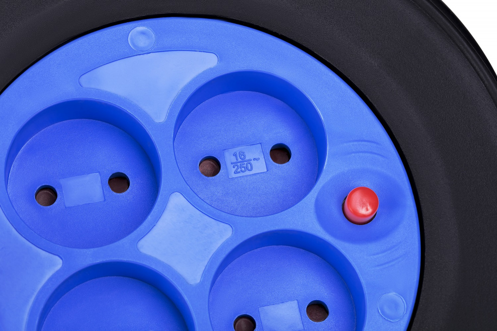 2 Е 4XCEE7 / 17 - подовжувач на котушці на 15 м з чотирма розетками євростандарту і зручною ручкою. Модель використовує двожильний кабель з перетином 1.5 мм ² (2 x 1.5 мм).