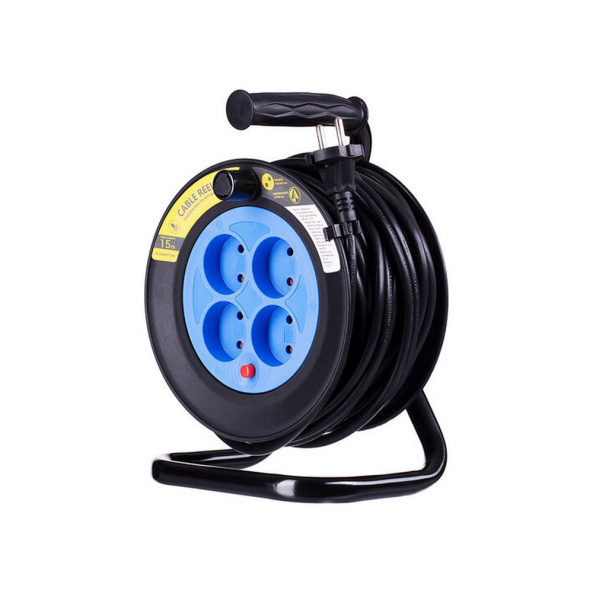 2Е 4XCEE7/17 - подовжувач на котушці на 15 м з чотирма розетками євростандарту і зручною ручкою