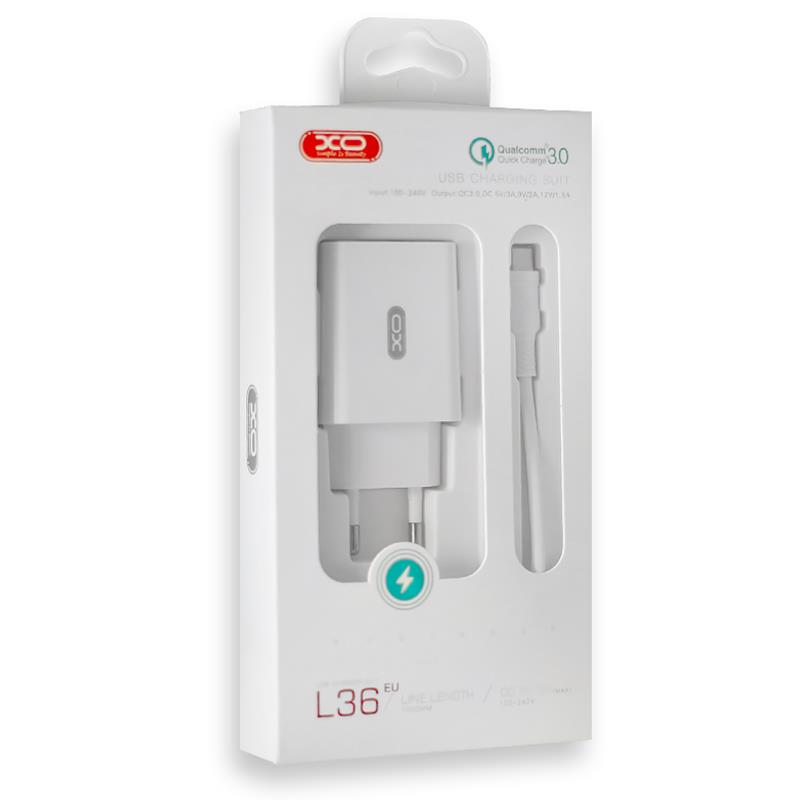 Опис товару Мережевий зарядний пристрій XO L36 (1USB, 3A) QC3.0 White (00000011479) + кабель Lightning