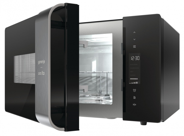 Мікрохвильова піч Gorenje MO23ORAB з колекції Ora-Ito має внутрішню робочу камеру з нержавіючої сталі і фронтальну поверхню зі скла і металу. За приладом легко доглядати завдяки якісним матеріалам. Сенсорна панель створена для інтуїтивно зрозумілого управління. Режими мікрохвиль і гриля і їх поєднання дозволяють не тільки розігрівати і розморожувати, а й готувати гарячі страви.