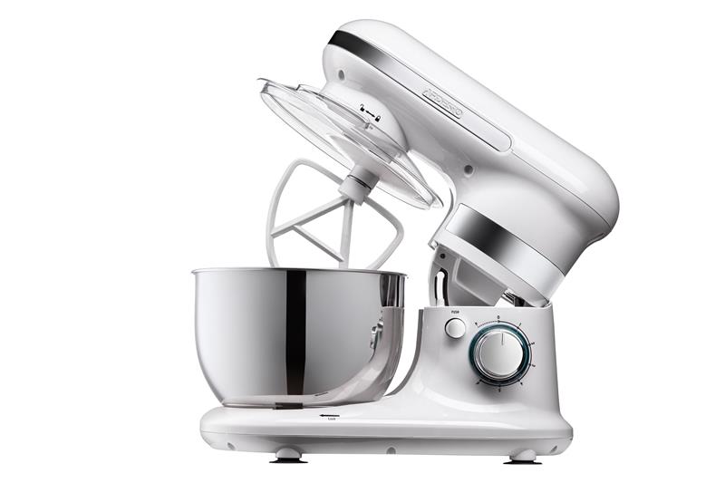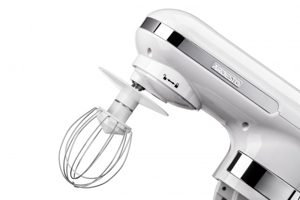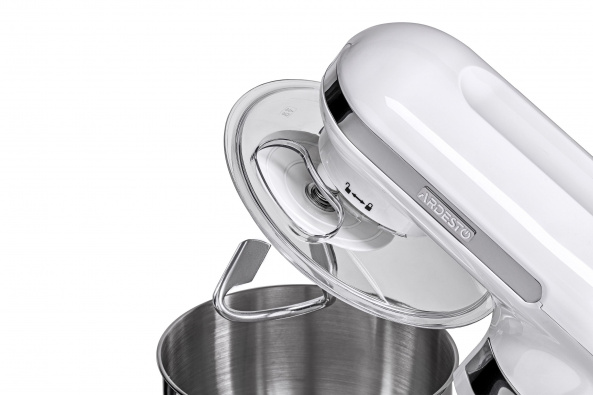 Планетарний міксер для збивання великої кількості інгредієнтів та швидкого замісу тіста. У комплект постачання входить чаша з кришкою, а також насадки трьох типів.