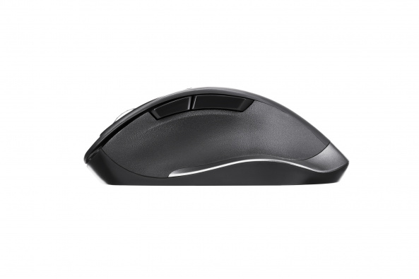 Повнорозмірна бездротова миша анатомічної форми, розроблена для комфортної роботи протягом тривалого часу. Підставка під великий палець з прогумованою вставкою, приємне на дотик Soft-touch покриття та форма миші роблять її максимально зручною. Шість додаткових функціональних кнопок, можливість зміни чутливості з 800 до 2400 DPI, допоможуть максимально ефективно користуватися мишею в різних робочих процесах – від пошуку в інтернеті, до роботи у графічних редакторах. Доповняють загальне враження - стильний дизайн з декоративними срібними елементами.