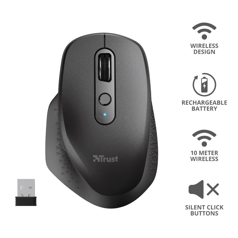 Опис товару Миша Trust Ozaa Rechargeable WL Black