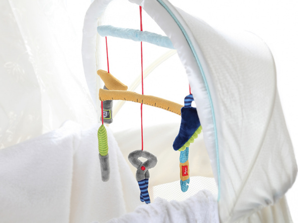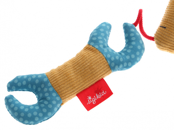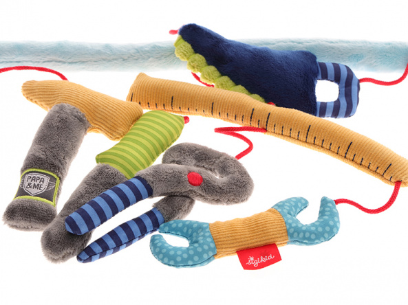 Мобіль із іграшковими інструментами німецького виробника іграшок sigikid – це водночас розвивальна іграшка для малюків і стильний аксесуар у дитячу кімнату. Виріб виготовлений із безпечних матеріалів: поліестеру і котону. Мобіль являє собою дві перехресні м’які дуги із 5 підвісками у вигляді: гайкового ключа, викрутки, плоскогубців, молотка і пили. Такий оригінальний мобіль – чудовий подарунок для маленьких хлопчиків з народження. Іграшка у цупкій, дуже якісній фірмовій коробці розміром 30х17,5х5,5 см.