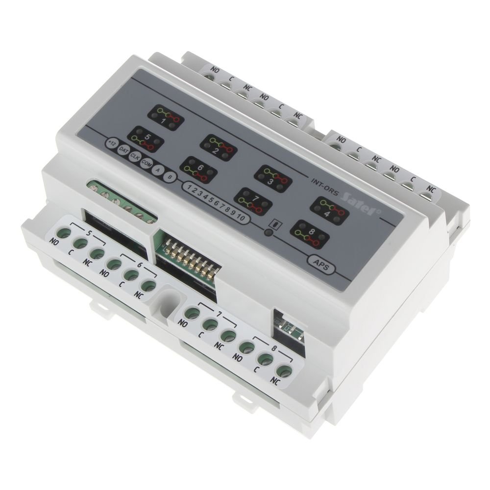 Модуль INT-ORS предназначен для осуществления непосредственного управления устройствами 220 В с помощью ПКП INTEGRA. Это идеальное решение в случае использования возможностей, предоставляемых ПКП INTEGRA для создания системы автоматики. Модуль INT-IORS предназначен для установки на стандартную DIN-рейку 35 мм. Он позволяет расширить систему INTEGRA на 8 программируемых релейных выходов.