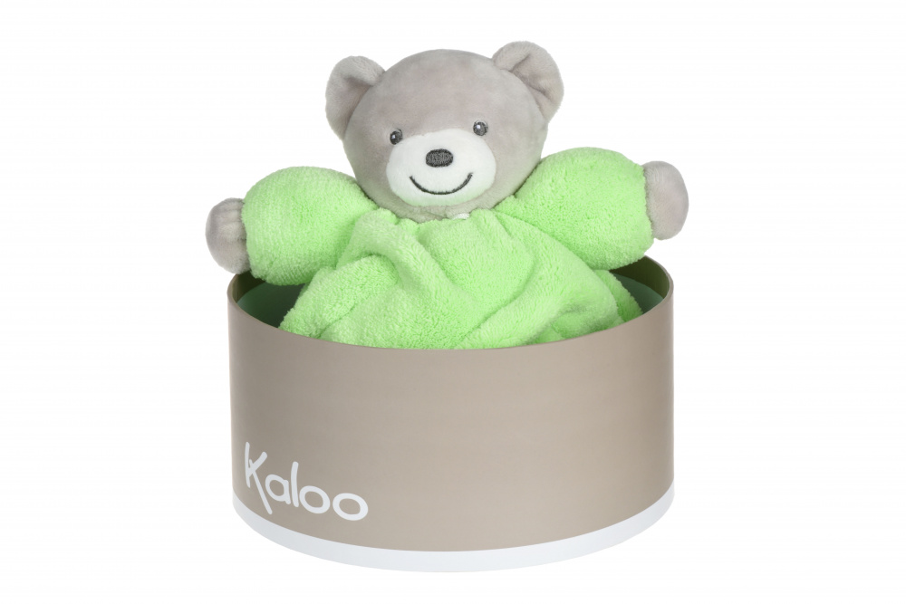 Яскравий зелений ведмедик із серії «Неон» від французького виробника іграшок Kaloo. Колекція відрізняється іграшками «неонових» кольорів, які привертатимуть увагу малюків та стимулюватимуть зорове сприйняття. Іграшка вироблена із мікрофібри, матеріал надзвичайно м’який, приємний для маленьких рученят. Малюки залюбки хапатимуть цікавого ведмедика із складочками, обійматимуть і засинатимуть з ним. Іграшка висотою 18,5 см, матеріали безпечні і підходять навіть немовлятам. Ведмедик живе у круглій фірмовій коробочці.