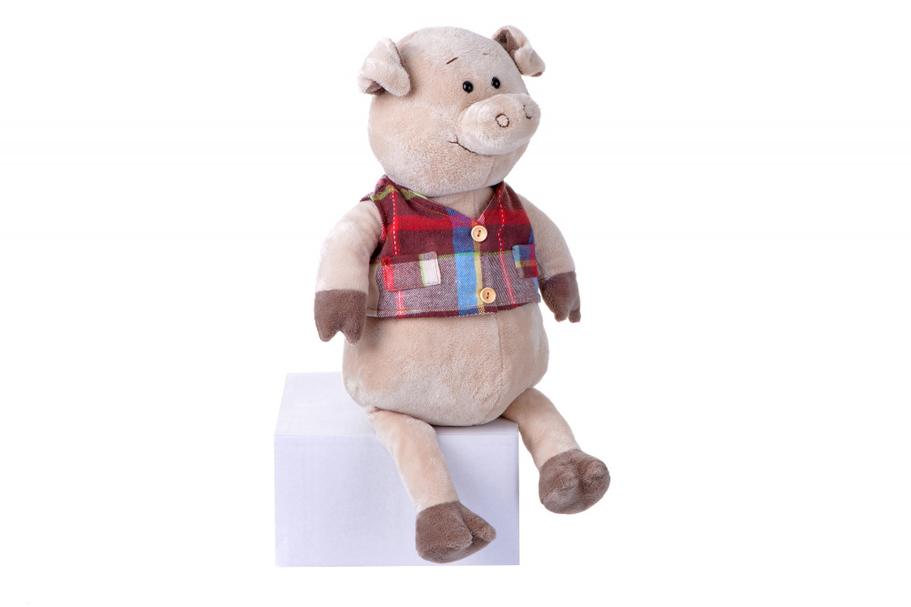 Цей кумедний та неймовірно милий п’ятачок у картатій жилетці – справжній інтелігент. Він обов’язково стане найкращим другом не лише для дитини, а й для дорослого, адже усі ми любимо м’які іграшки незалежно від віку. Іграшка надзвичайно м’яка та приємна на дотик. Настільки, що її не можливо випустити з рук та припинити обіймати. Дрібні кульки всередині іграшки забезпечують стійкість, а також розвивають моторику рук. Іграшка стане чудовим подарунком, тим паче – свинка є символом майбутнього – 2019 року. Висота поросятка 45 см.