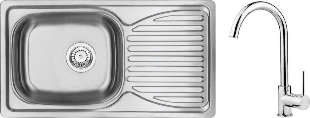 Набор для кухни Deante Doppio, стальная мойка ZEN_0113 + смес. BOC_062M, сталь