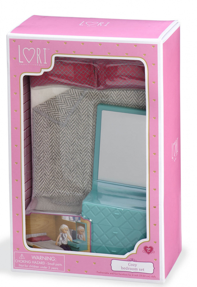 Сон – головний спосіб відновлення організму та відпочинку. Як відомо, запорука гарного сну становить комфорт та приємна атмосфера спальної кімнати. Затишний набір для спальні стане цікавим доповненням до іграшок LORI і буде заохочувати творчість і сюжетно-рольову гру у дітей. Всі предмети реалістичні і функціональні: в туалетному столику висуваються ящики, а в дзеркалі можна побачити своє відображення! Підходить для усіх ляльок LORI 15 см. У набір входить: матрац, ковдра, 2 подушки, туалетний столик і двоспальне ліжко. Розмір упаковки: 26 х 9 х 17 см. Рекомендований вік: 3+.