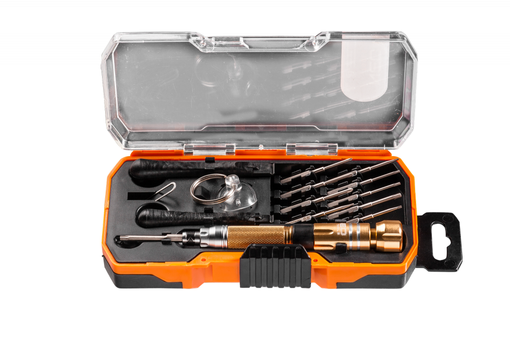 Набір для ремонту смартфонів NEO складається з 10 насадок, котрі підходять до найпопулярніших на ринку моделей смартфонів. Крім того, є лопатки, що дозволяють відкривати корпус без пошкоджень, а також присоска, для зручного зняття скла та поворотний тримач викруткових наконечників, що полегшує роботу. Бренд NEO виправдовує очікування професіоналів.