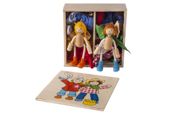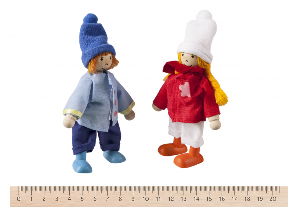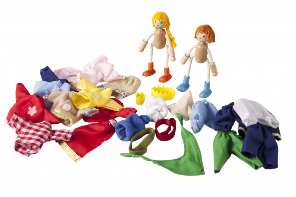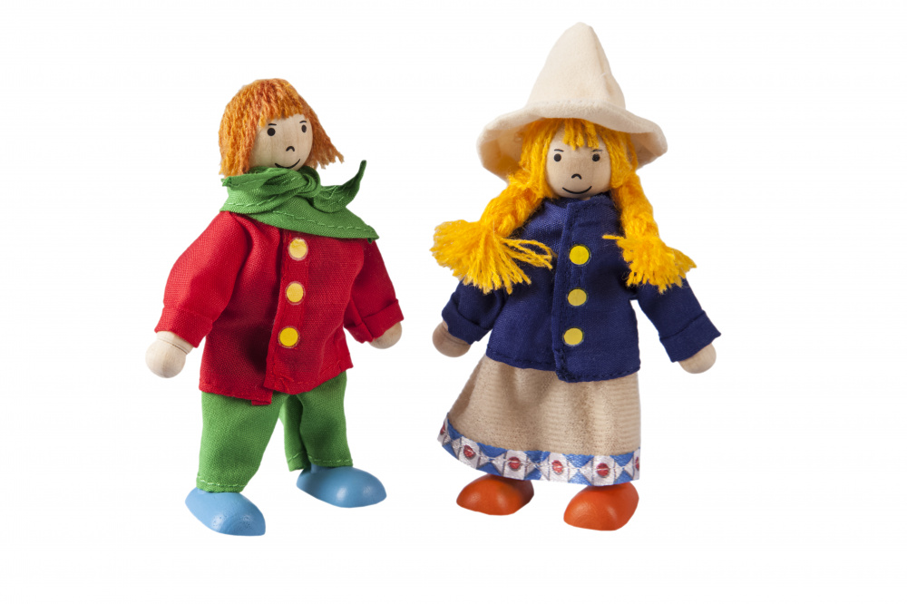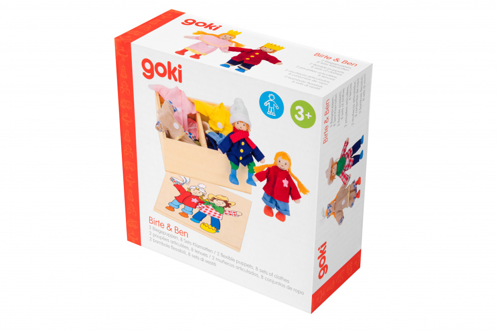 Кожен ляльковий будиночок або мініатюрна сценка потребують його жителів – ляльок. Німецький виробник іграшок goki пропонує набір дерев’яних ляльок із різноманітними наборами одягу. Хлопчик та дівчинка Бірта і Бен, у кожного – по 4 комплекти одягу. Кожен день вони можуть виглядати по різному: королем та королевою, ковбоєм та покахонтас, у зимовому або повсякденному одязі. Облаштуйте будиночок меблями, і ляльки неодмінно будуть щасливі жити у ньому. Для дітлахів від 3-х років.