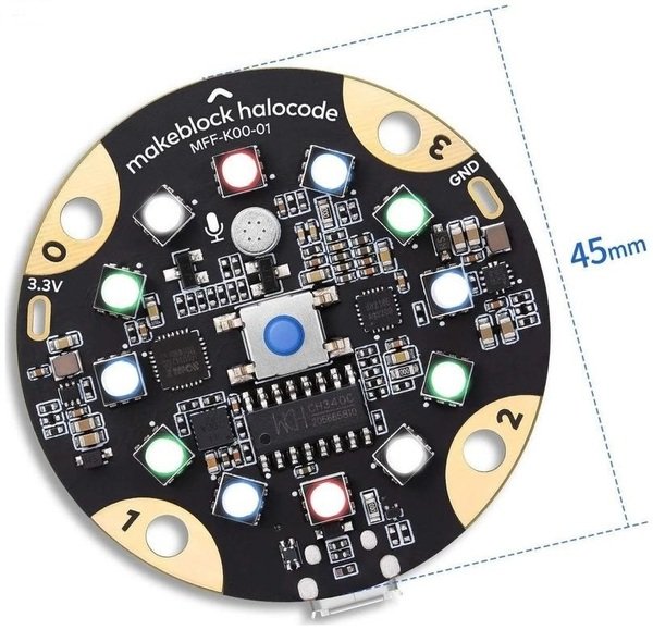 Makeblock Halocode - це одноплатний комп'ютер з вбудованим Wi-Fi модулем, розроблений для навчання програмуванню і спроектований в зручному компактному вигляді з широкими можливостями для розширення. У поєднанні з блоковим ПЗ mBlock, Halocode робить навчання легким і веселим і дає дітям безпосередній доступ до технологій штучного інтелекту і розумного будинку.
