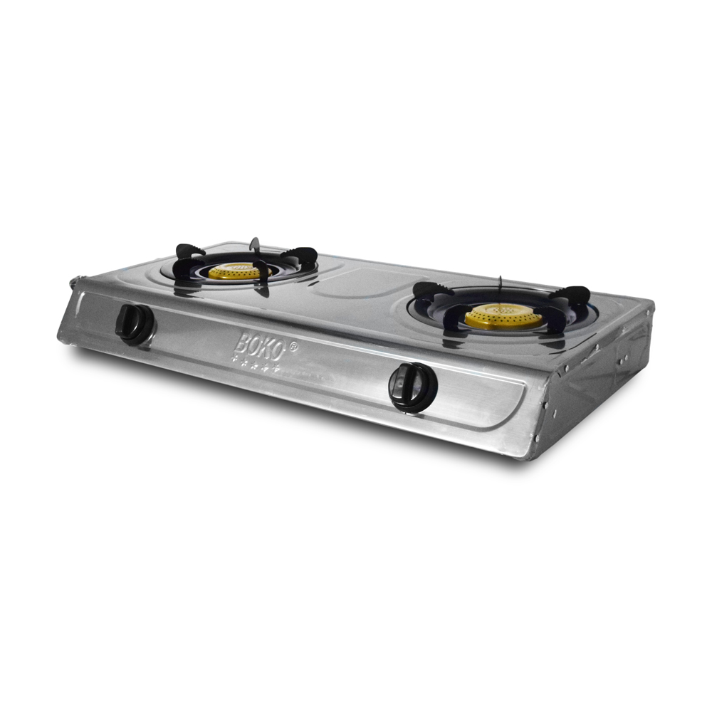 Настільна газова плита BOKO на 2 конфорки – має приємний сучасний дизайн із нержавіючої сталі. Працює від зрідженого газу. Підключається плита до балона спеціалізованим газовим шлангом через редуктор (не входить до комплекту).