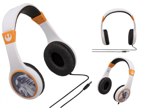 Серед прихильників космічної саги «Зоряні війни» також є малеча, адже усі дітлахи обожнюють пригоди та фантастичні історії. Саме для них компанія eKids випустила навушники, стилізовані під тематику фільму. Навушники білого кольору, з помаранчевими елементами для тих, хто надає перевагу світлій стороні. Підходять як хлопчикам, так і дівчатам. На чашах зображені роботи-астродроїди з космічної саги – R2-D2 та BB-8, а на дужках елегантний символ – Альянс Повстанців. Тож, дитина завжди зможе брати з собою своїх улюблених героїв.