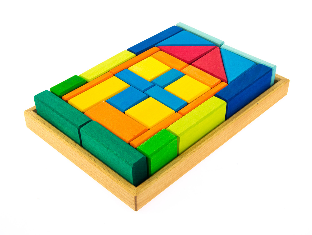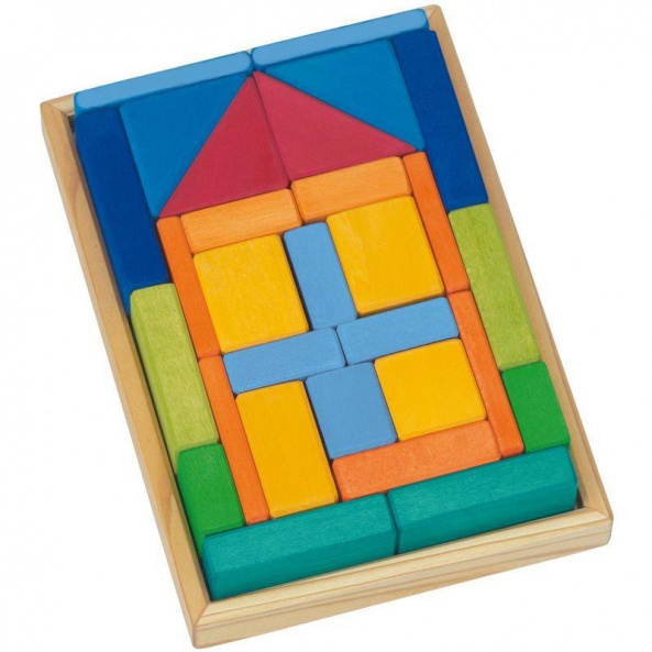 Побудуй яскравий будинок своєї мрії разом із німецьким виробником іграшок nic. Деталі конструктора складені на дерев’яній дошці, та разом щільно стягнуті прозорою поліетиленовою плівкою. До складу набору входить 29 різнокольорових деталей, вони вироблені із натуральної деревини, вкритої матовими фарбами на водній основі. Кольори вражають: червоні, помаранчеві, жовті, відтінки блакитних та зелених тощо. Деталі конструктора якісно оброблені, вони не ковзають в руці. Розміри упаковки: 27х18,5х5 см.