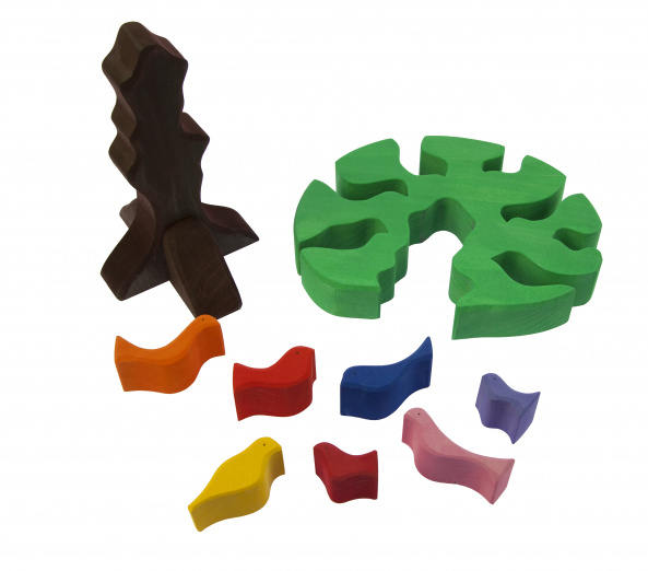 Розташуй усіх пташечок на літньому дереві з конструктором німецького виробника іграшок nic! Набір у вигляді дерева з кольоровими пташками-вкладишами, кожна з яких має свій розмір і унікальні обриси. Весь набір надійно запакований у прозору поліетиленову плівку. Усі 9 деталей вироблені із натурального дерева, вкритого фарбами на водній основі. Матеріали, використані у виробництві, нетоксичні і безпечні для дитини. Висота дерева складає 23 см.