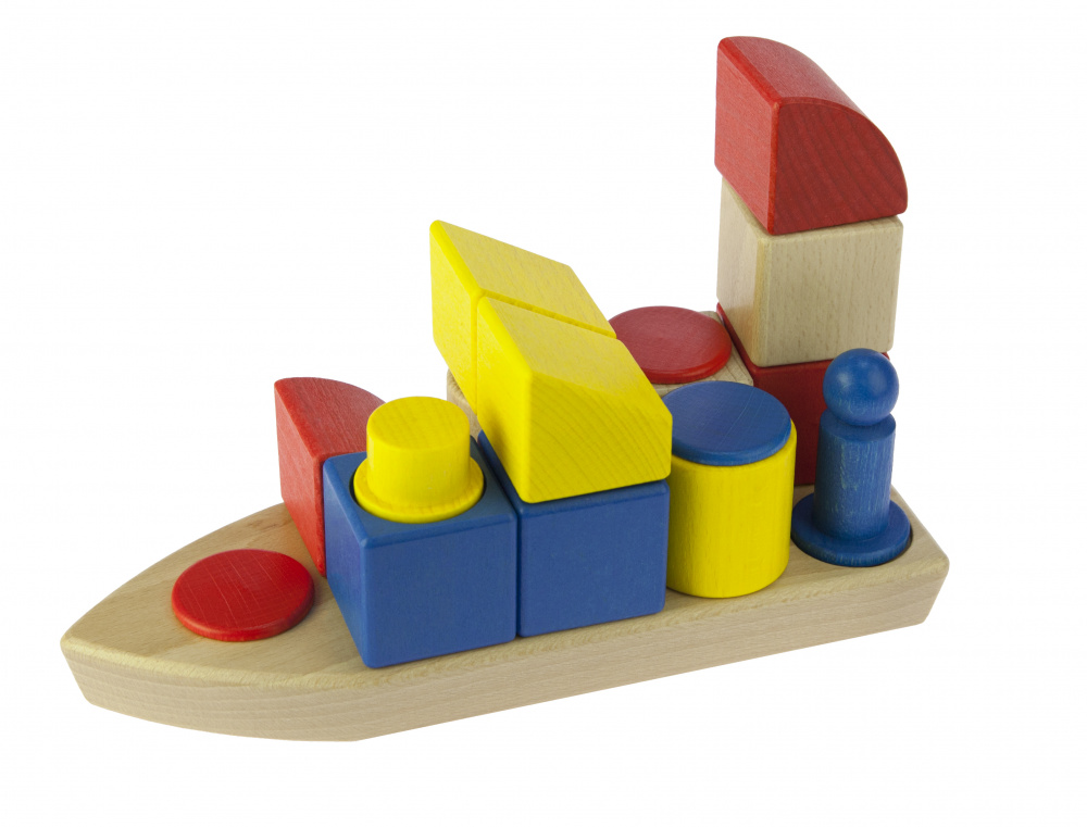Мрія про круїзну подорож на кораблі здійснюється завдяки дерев’яному конструктору німецького виробника іграшок nic! Іграшковий набір вироблений із натурального дерева, що вкрите кольоровими фарбами на водній основі. Конструктор постачається у надійній прямокутній коробці, всередині якої знаходиться 27 деталей, включаючи дерев’яну суцільну платформу. Платформа натурального кольору, вона дуже якісно оброблена і тому буде легко ковзати по поверхні. Її довжина від носа до корми – 20,5 см. Різноманітні дрібні деталі призначені для поєднання частин судна та для його модифікацій.