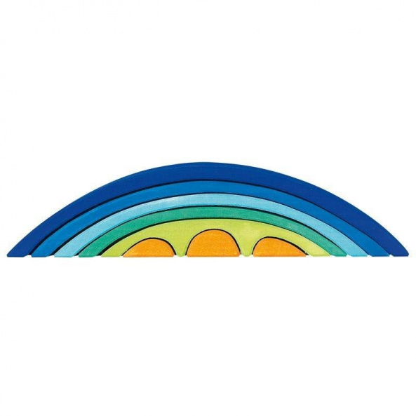 Казковий міст на заході сонця стає ближче завдяки конструктору німецького виробника іграшок nic. Набір у вигляді моста, складеного із 8 дерев’яних дугоподібних форм. Довжина найбільшої дуги – 39 см, ширина – 7 см, а висота зібраного «моста» - 8 см. Комплект запакований у прозору поліетиленову плівку. Усі деталі виконані із натурального дерева, вкритого кольоровими матовими фарбами на водній основі. Матеріал абсолютно нетоксичний і безпечний для дітей.