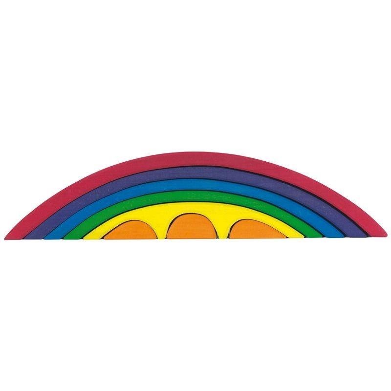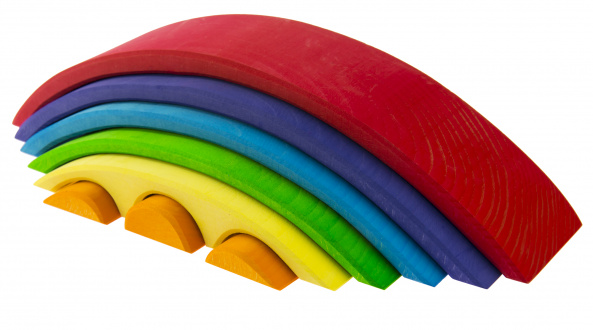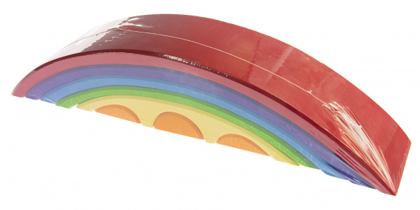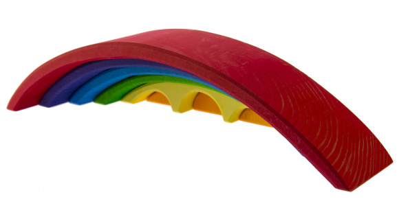 Райдужний міст на заході сонця оживає завдяки розвиваючому конструктору німецького виробника іграшок nic. Набір має вигляд кольорового моста із 8 дерев’яних дугоподібних форм. Довжина найбільшої дуги – 39 см, ширина – 7 см, а висота складеного «моста» - 8 см. Комплект запакований у прозору поліетиленову плівку. Усі деталі виконані із натурального дерева, вкритого кольоровими матовими фарбами на водній основі. Дерево якісно оброблене, воно приємне на дотик, тож конструктор абсолютно нетоксичний і безпечний для дітей.