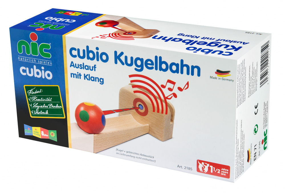 Казковий світ дитини розкривається разом із розвиваючим дерев’яним набором німецького виробника іграшок nic. Він упакований у надійну картонну коробку. Матеріал іграшки – натуральне дерево, воно приємне на дотик і дуже добре оброблене. Фарби, які нанесені на дерево, на водній основі та безпечні для дитини. Набір сумісний із іншими наборами серії "Cubio Кулькова дорога".