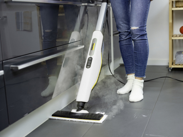 Безтурботне глибоке очищення твердих поверхонь: маневрена парова швабра EasyFix Premium SC 3 Upright при ретельному прибиранні видаляє 99,99% поширених побутових бактерій.
