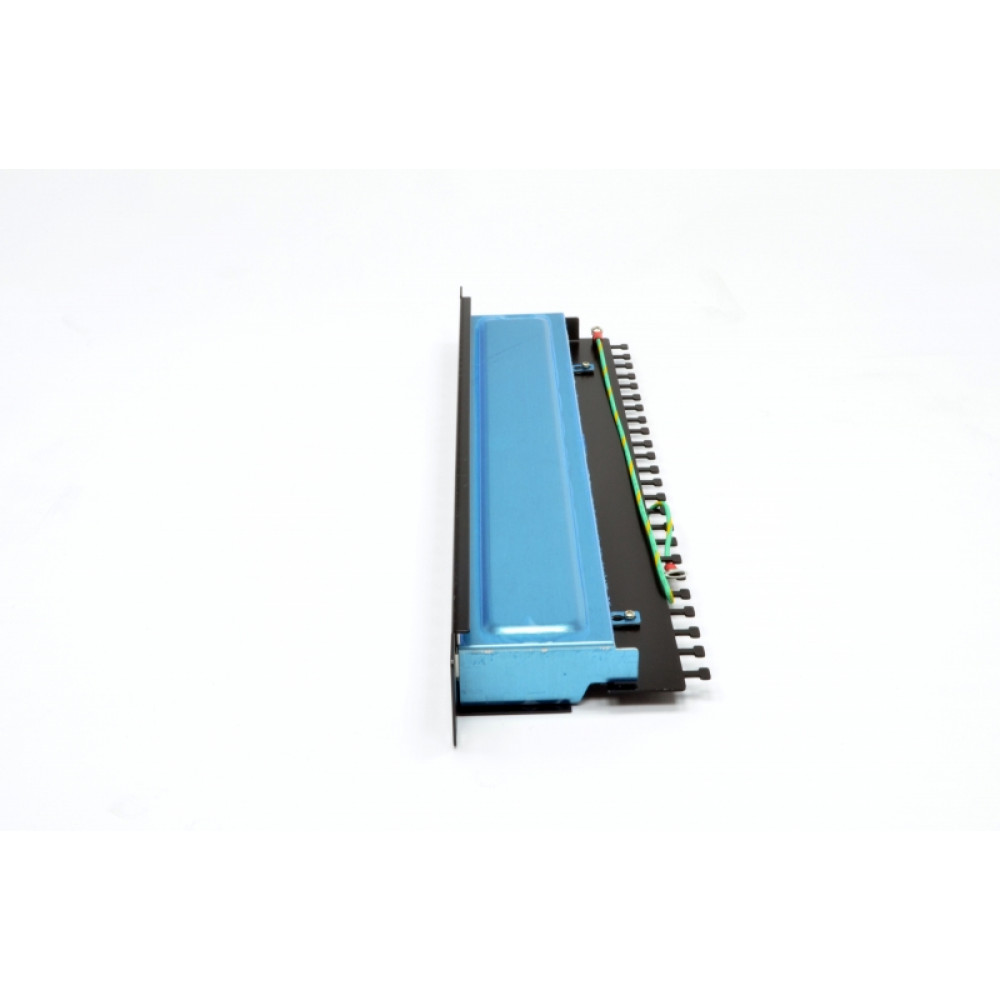 На тильній стороні розташована плата, на якій встановлені пластикові модулі з мідними ножами для розключення звитої пари методом «забивання». Нанесена кольорова схема A і B. Звита пара підводиться і кріпиться пластиковими стяжками до кабельного організатора, розрахованому на 24 линка, з додатковою фіксацією екрану металевими зажимами