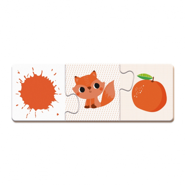 За допомогою набору пазлів можна вивчити назви кольорів і відтінків. Гра для покращення асоціативного мислення і візуального сприйняття. Виберіть колір, знайдіть відповідну тварину, а потім пов'язаний об'єкт, щоб створити свою головоломку! Ця гра асоціації ідеально підходить для розвитку моторних навичок дитини. У наборі 30 деталей для складання 10 асоціативних картинок.