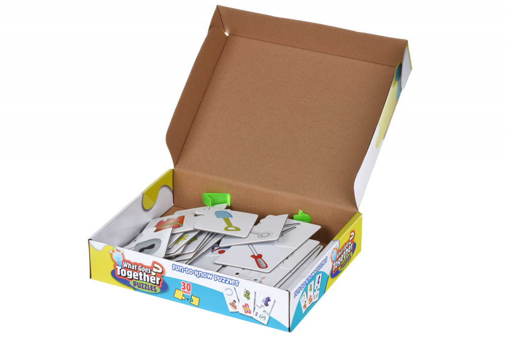 Пазл «Що має бути разом» - навчальний набір, що допоможе дітям встановлювати асоціації і логічні зв’язки. Усього в наборі 60 фрагментів, з який потрібно зібрати 30 асоціативних пар. Рекомендований вік: 3+. Фрагменти виготовлені з цупкого, твердого картону. Їх можна складати необмежену кількість разів і вони не пошкодяться.