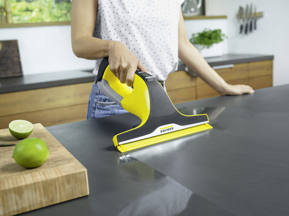 Не витрачайте час на миття вікон: акумуляторний вібропад KV 4 з електричною системою зволоження вібрує і, таким чином, видаляє забруднення, а віконний пилосос WV 6 прибирає вологу.