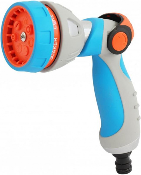 Має зручний прогумований кільцевий перемикач режимів поливання та плавне регулювання потоку води; Головка дощувача зроблена зі сталі, ручка — з багатошарового пластику. Корпус має гумове покриття. Прискорює процес поливання садових рослин, допомагає під силою напору змити навіть скам’янілий бруд із садового інвентарю й допомагає впорається з іншими побутовими завданнями на дачній ділянці, у саду. Надійний пістолет призначений для ефективного поливання газону, клумб, чагарників, а також для миття садового інвентарю й техніки, для миття машини, для змивання бруду зі сходинок і доріжок.