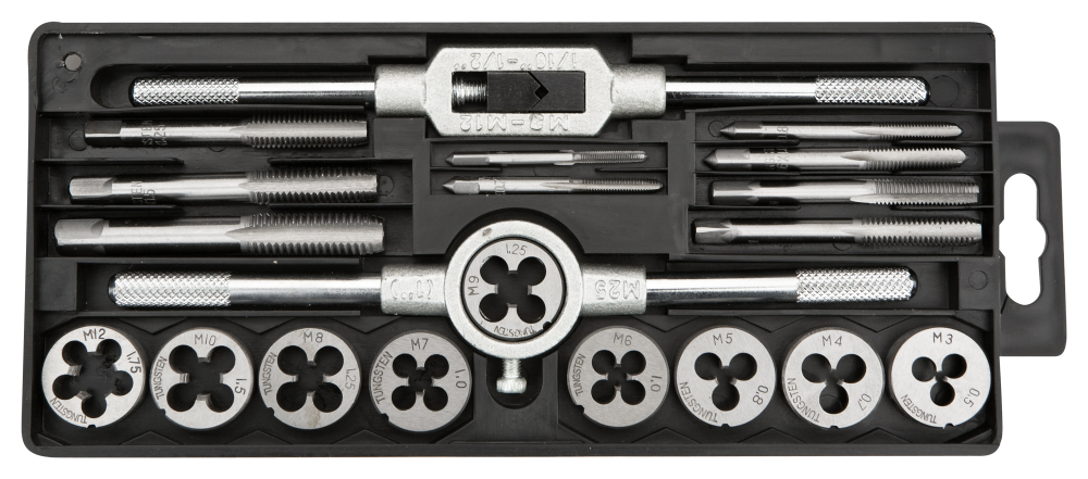 Опис товару Плашки та мітчики TOPEX, M3 - M12, набір 20 шт.