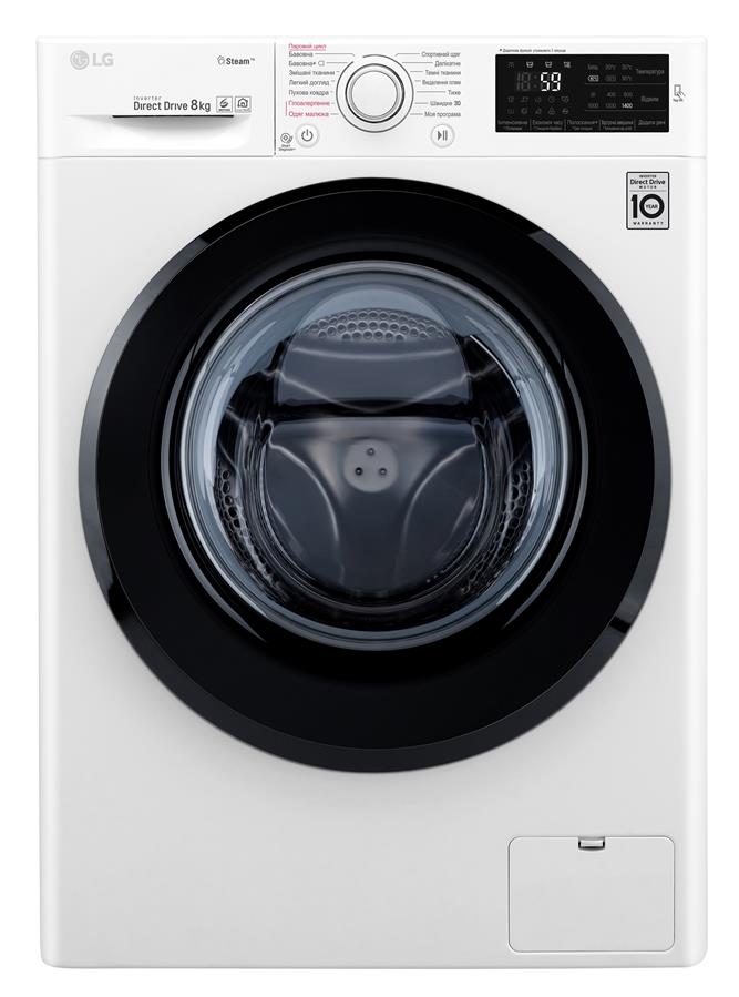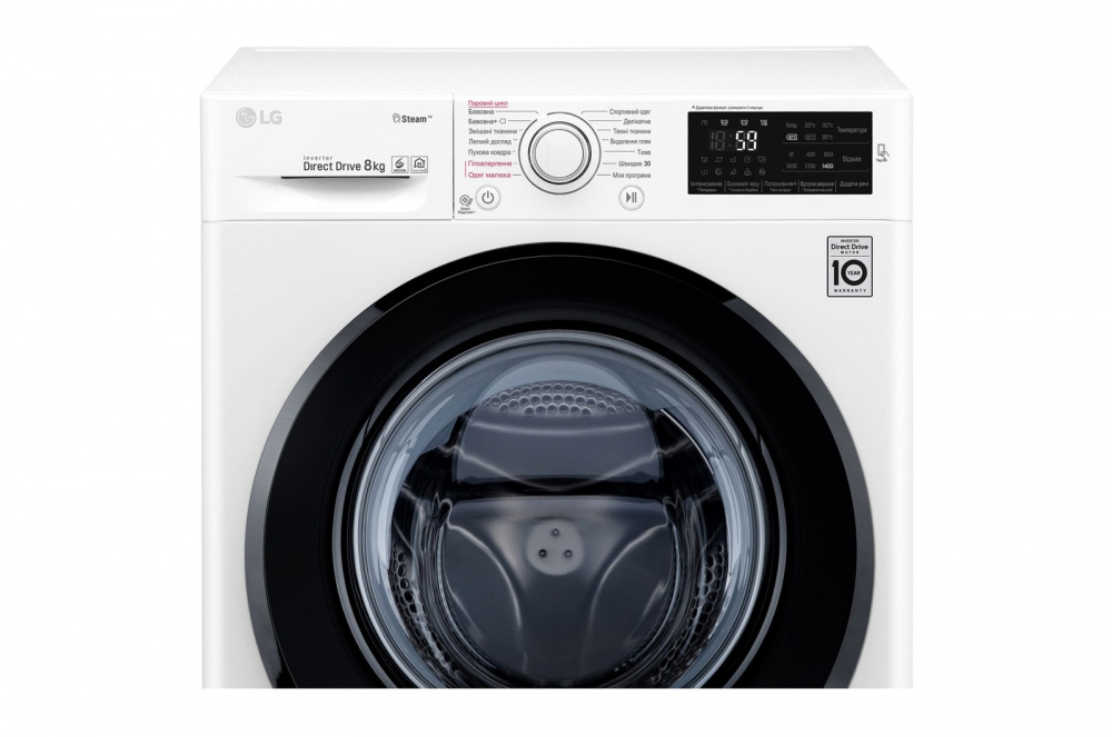 Пральна машина з фронт. завант. LG F4J5TS6W, 8кг, 1400, A+++-30%, Пара, глибина 56см, Дисплей, Білий