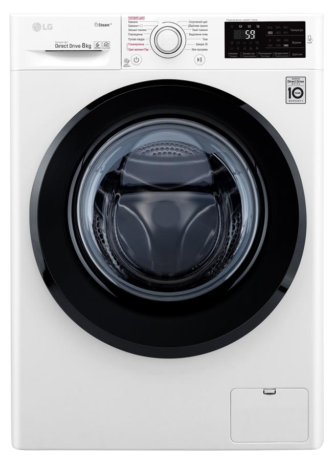 Опис товару Пральна машина з фронт. завант. LG F4M5TS6W, 8кг, 1400, A+++-30%, Пара, глибина 56см, Дисплей, Білий