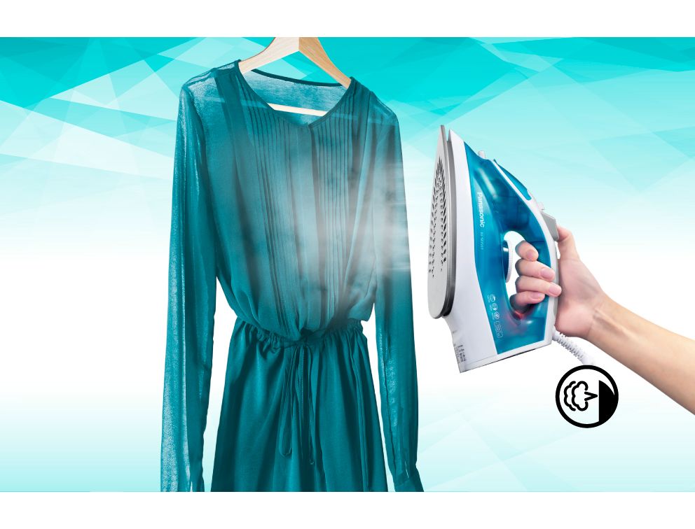 Паровий удар допоможе позбутися непіддатливих складок, а система усунення накипу запобігає його утворенню та тримає отвори для пари чистими.