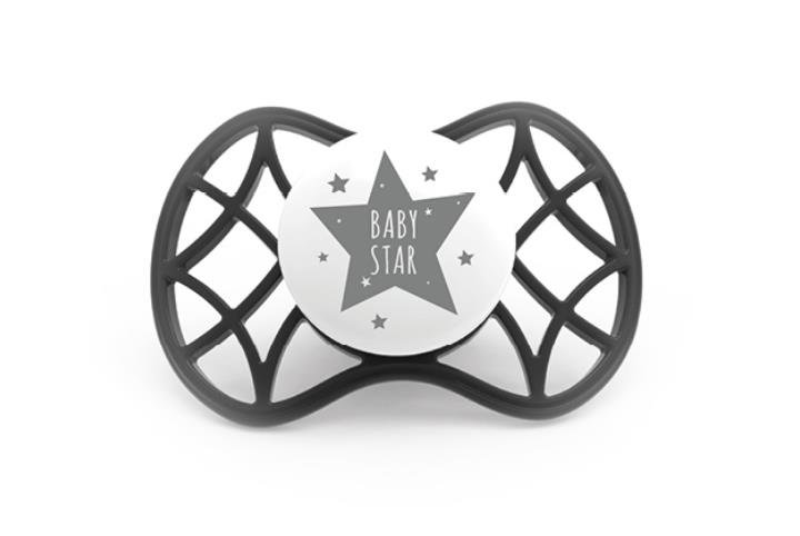 Опис товару Пустушка симетрична Nuvita NV7065 Air55 Cool 0m+ "BABY STAR" чорна