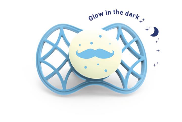 Характеристики товару Пустушка симетрична Nuvita NV7085 Air55 Cool 6m+ "вуса" світиться у темряві блакитна