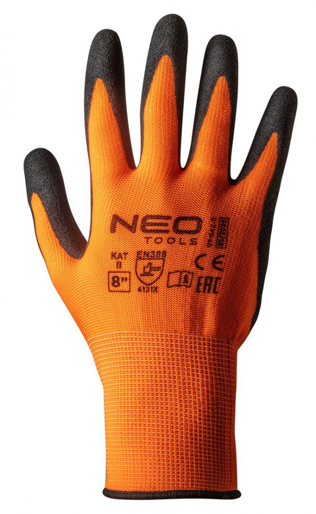 Характеристики товару Рукавички NEO робочі, поліестер з нітриловим покриттям (піщаний),р. 8