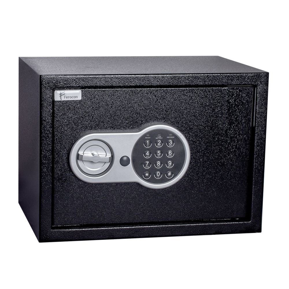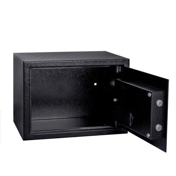 Сейф меблевий, кодовий електронний замок, чотири анкерних отвори для кріплення до стіни і підлоги, товщина металу дверей 3мм, товщина металу стінки 1.2 мм, код, 2 сталевих ригелі, вага 6.1кг, 350 х 250 х 250мм