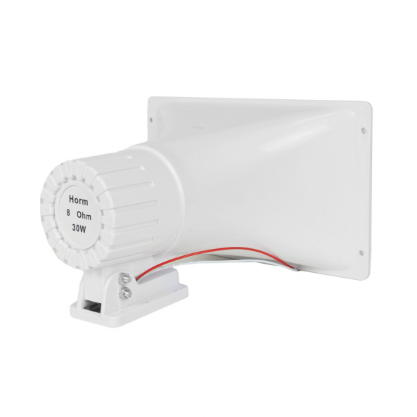 Сирена ATIS DS-H59 потужний оповіщувач звукового сигналу. Рівень звукового тиску: 125 дБ. Кількість тонів: 2. Живлення від зовнішнього джерела: 6-14 В постійного струму. Споживання 30 Вт. Номінальний струм: 1200 мА. Ступінь захисту: IP45. Колір: білий. Робоча температура: -30°C ~ +50°C. Розміри: 279 x 240 x 175 мм