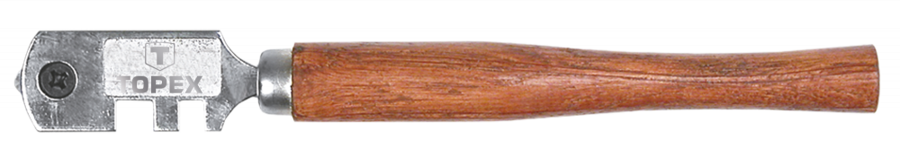 Склоріз TOPEX - це простий інструмент для різання скла. Має шість запасних ріжучих ножів, що забезпечує довгий термін служби. Дерев'яна рукоятка добре лягає в долоню, завдяки чому робота стає більш комфортною. Перевагою інструменту є захоплення на голівці, призначені для відламування скла - стануть в нагоді при різанні. Бренд TOPEX призначений для домашніх майстрів.
