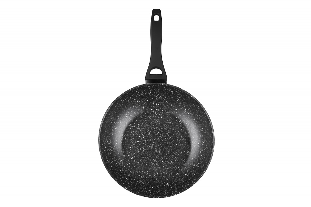 Сковорода WOK серії Gemini Gourmet Anzio виготовлена з кованого алюмінію у чорному кольорі. У серії посуду Gemini Gourmet використовується мармурове антипригарне покриття. Ручка виготовлена з бакеліта з Soft-touch покриттям. Сковорода сумісна з усіма видами плит, включаючи індукційну.