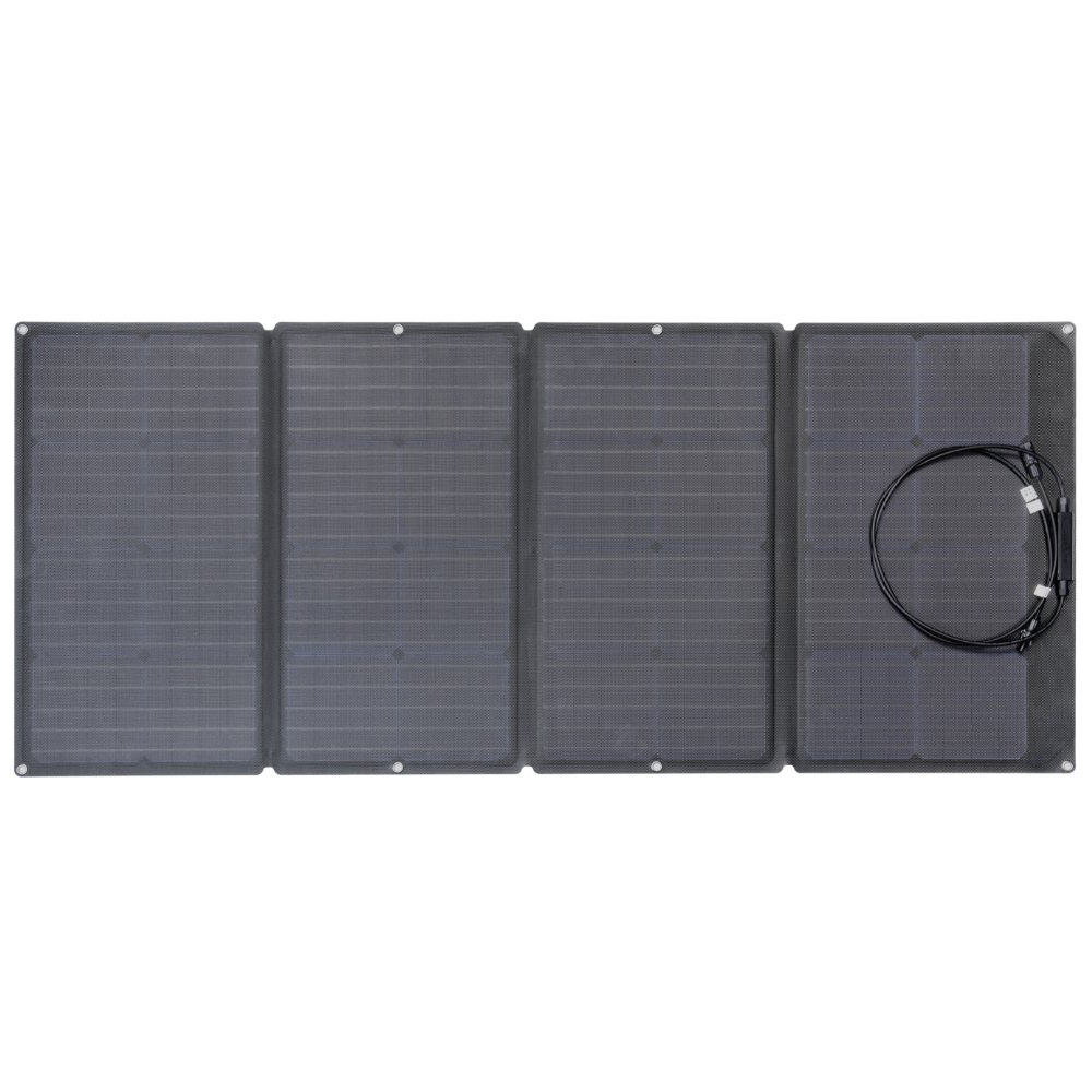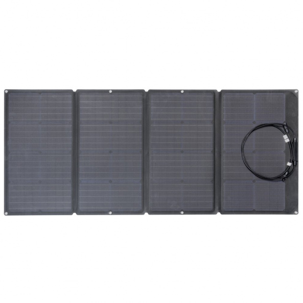 Мобільна сонячна панель для портативних зарядних станцій. Номінальна потужність: 160Вт. Тип роз'єму: MC4. Тип матеріалу: монокристалічний кремній. Зручний чохол у комплекті. Ступінь захисту: IP68. Розмір у розгорнутому вигляді: 680 х 1570 х 24 мм. Вага: 5кг.